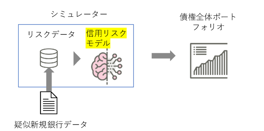 既存銀行のデータを変更し、新規銀行のデータを疑似的に作成しモデルによるリスク評価を行った。