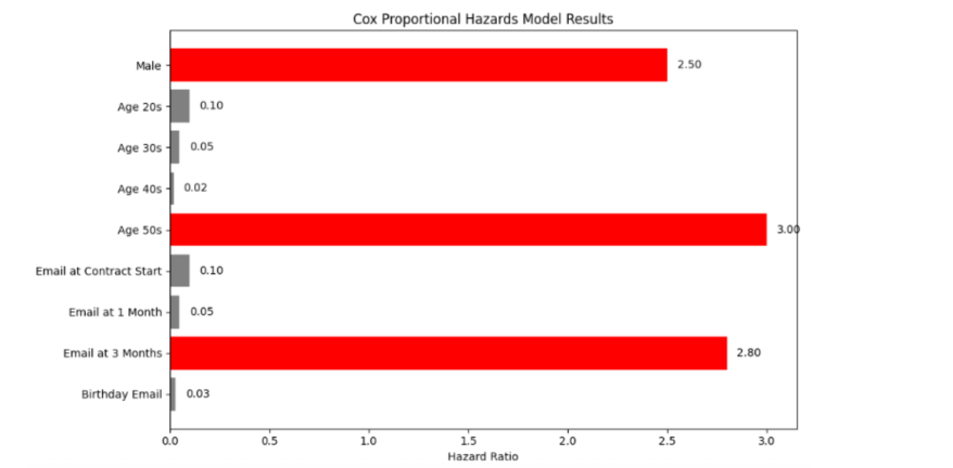 ・特に結果変数が、「一定期間経過後に一回限の利用」のサービスであることから、COX比例ハザードモデルで回帰分析モデルを構築。