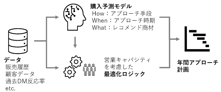 - 3つの要素(How、When、What) を考慮した年間顧客アプローチ計画が策定され、試算上は20-30%の売上向上が見込める結果となった。
