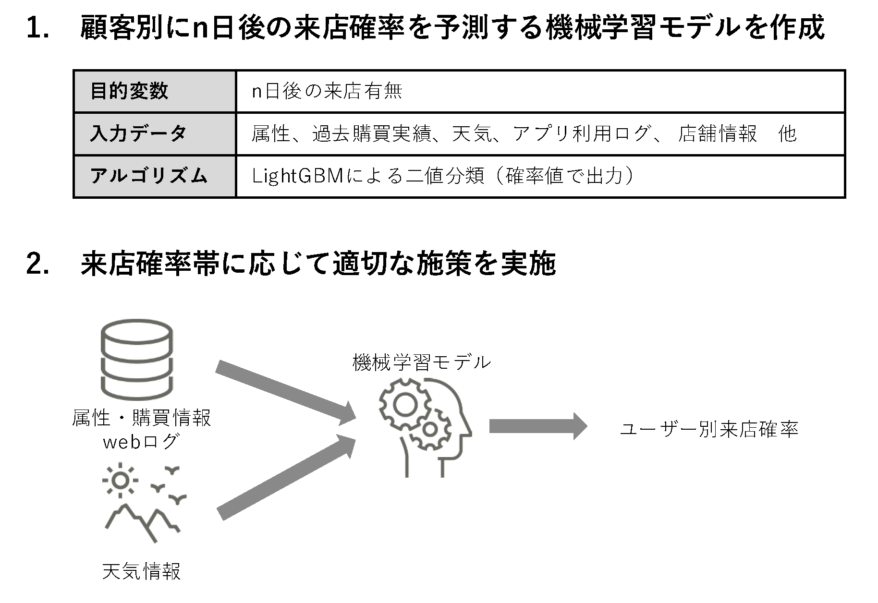 - 1to1 マーケティングの一環として、来店確率に応じて適切な来店促進施策を実施し、顧客体験の質を向上させたい